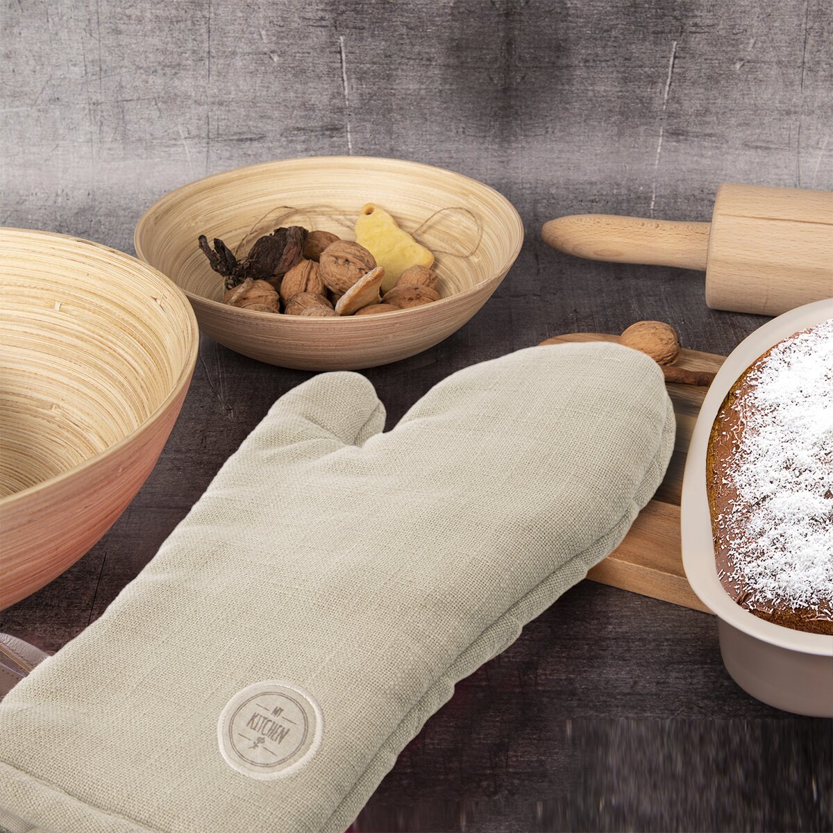 Viac informáciíAj kuchynská chňapka môže byť štýlová. To potvrdzuje táto bavlnená kuchynská rukavica v šedom odtieni s jemným zelinkavým nádychom, ktorá je štýlovým a funkčným doplnkom do vašej kuchyne.