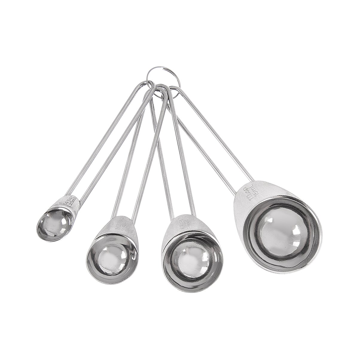 Kód produktu 120560Sada 4 kusov nerezových odmeriek na presné dávkovanie menšieho množstva surovín na varenie a pečenie – 1,25 ml, 2,5 ml, 5 ml a 15 ml.