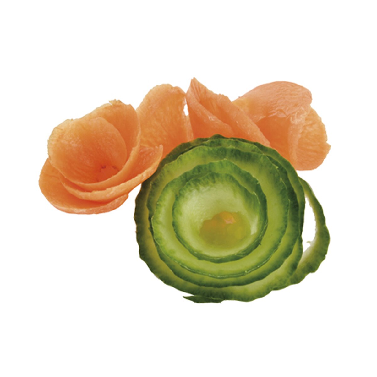 Kód produktu 140761Škrabka - orezávatko na zeleninu vytvorí z mrkvy, petržlenu, uhorky zaujímavé špirály, ktoré sa potom dajú tvarovať do rôznych tvarov alebo kvetov. Materiál: plast, kov. Rozmery: pr. 6 cm, d 6 cm. Nie je vhodné do umývačky.