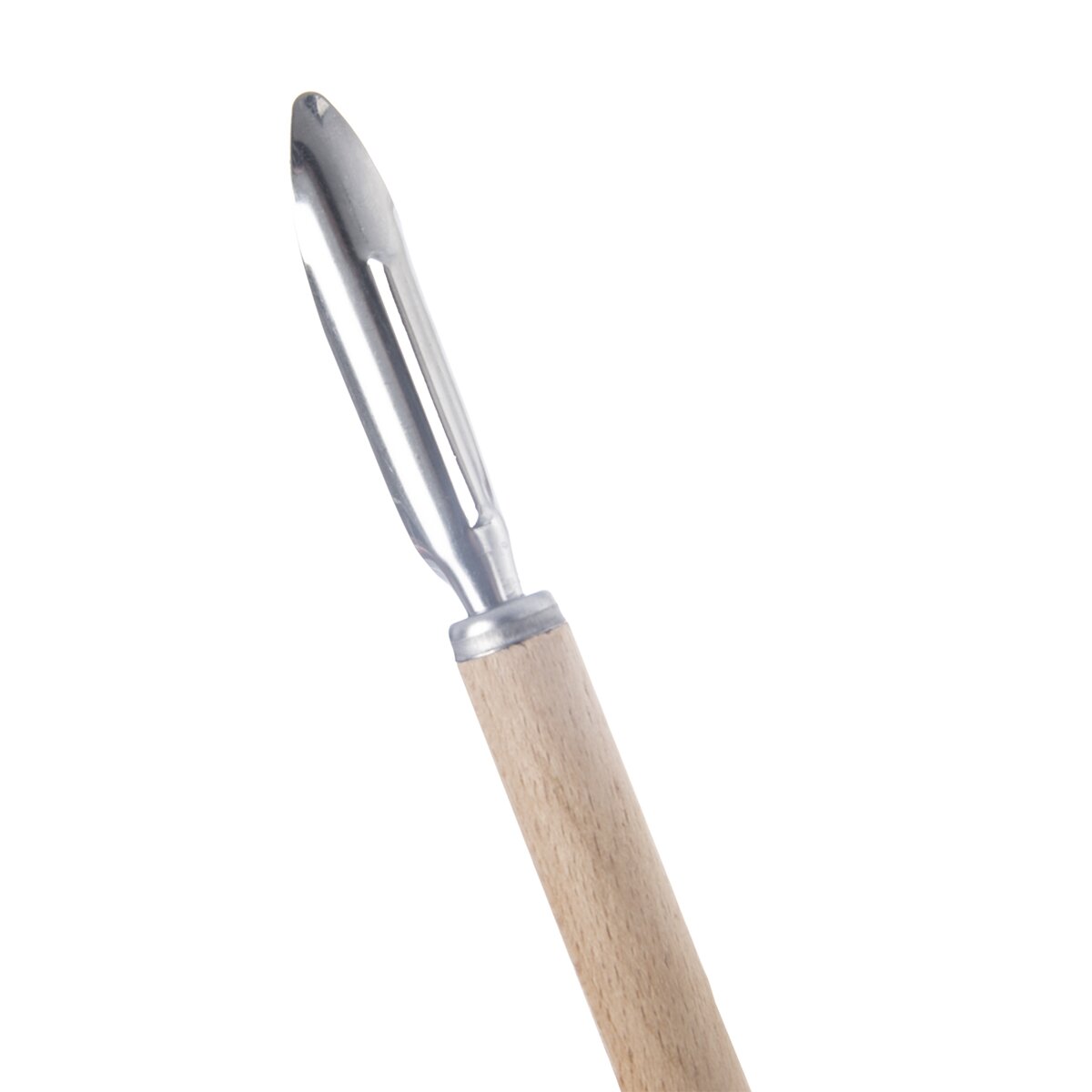 Kód produktu 140704Klasická kovová škrabka na ovocie a zeleninu s drevenou rukoväťou, určená pre ľavákov.