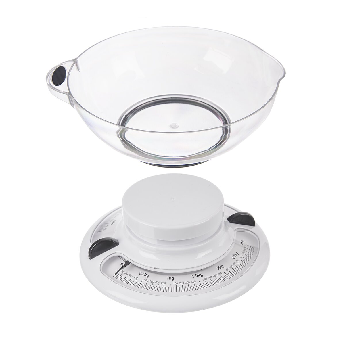 Kód produktu 131812Mechanická plastová kuchynská váha s transparentnou odnímateľnou miskou. Je určená na váženie najrôznejších objemov v domácnosti až do 3 kg.