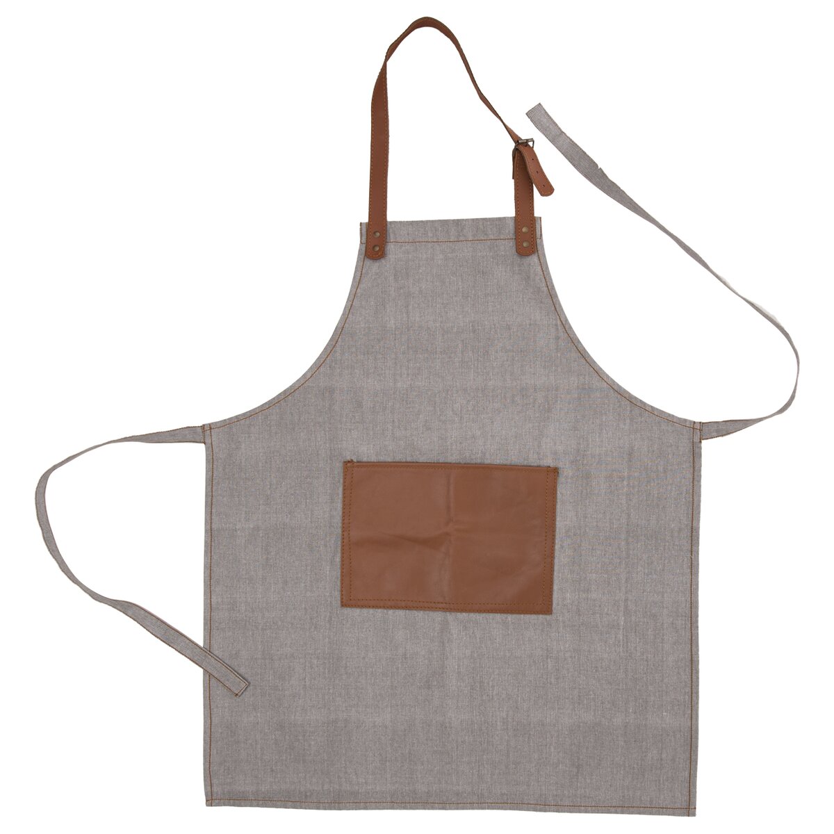 Kód produktu 960370Bavlnená kuchynská zástera s koženými detailmi, vreckom a nastaviteľnou prackou okolo krku.