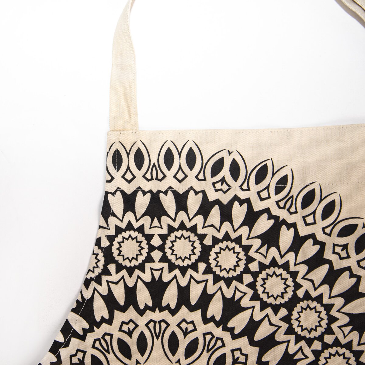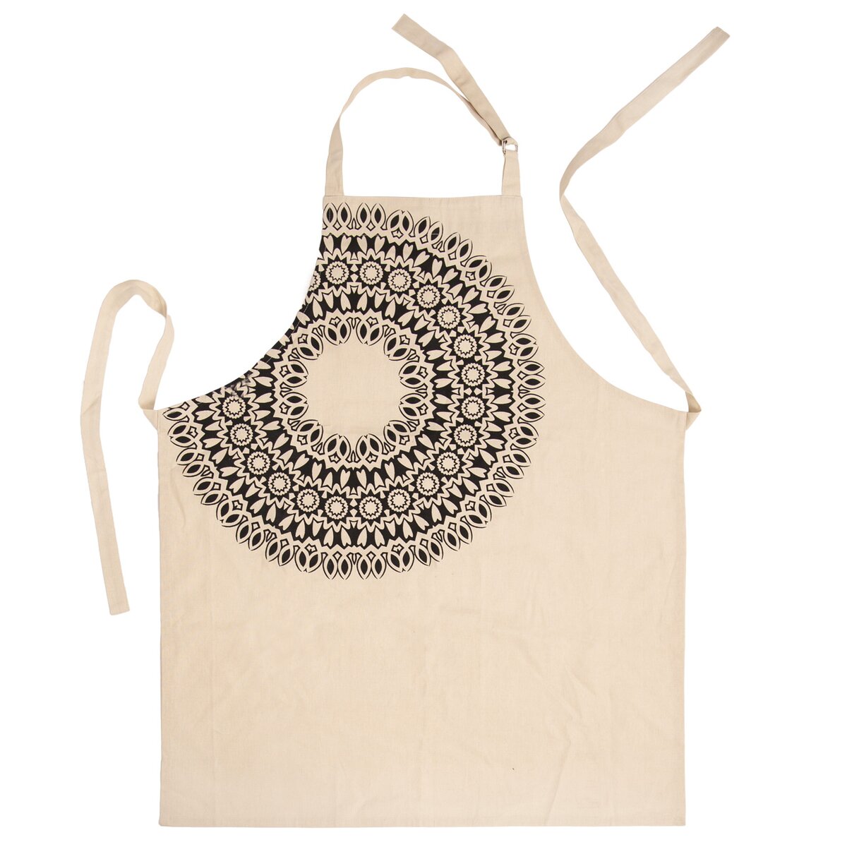 Kód produktu 960371Bavlnená kuchynská zástera so vzorom MANDALA, s nastaviteľným viazaním okolo krku.