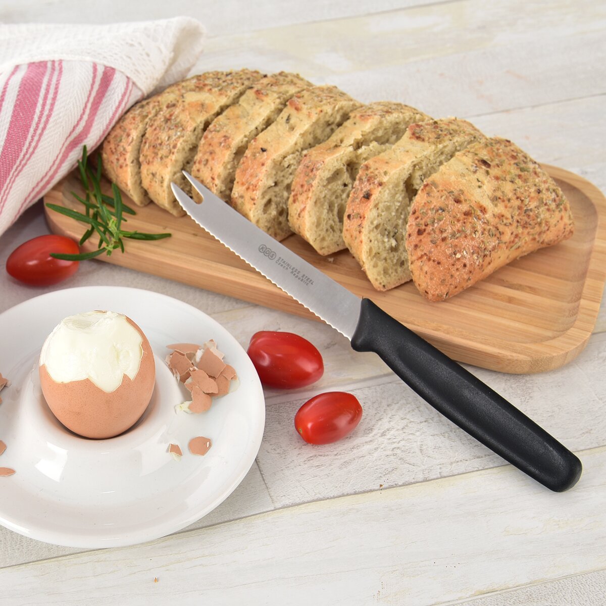 Viac informáciíKvalitný nôž českého výrobcu s dvojitou špičkou a nerezovou čepeľou s drobnými zúbkami je ideálny pri príprave desiaty do práce, školy aj na výlet alebo pri príprave chlebíčkov a jednohubiek pre vašich hostí. Je určený predovšetkým na krájanie syrov a údenín, ktoré môžete napichovať a prenášať bez dotyku rúk, ale aj na krájanie pečiva, ovocia a zeleniny, hlavne mäkších, šťavnatejších druhov, ako sú paradajky.