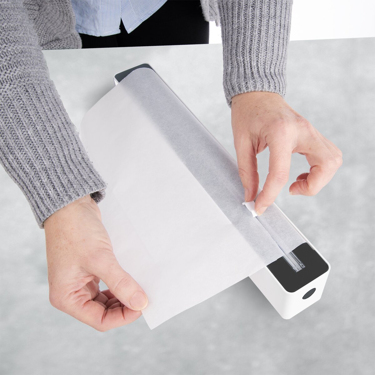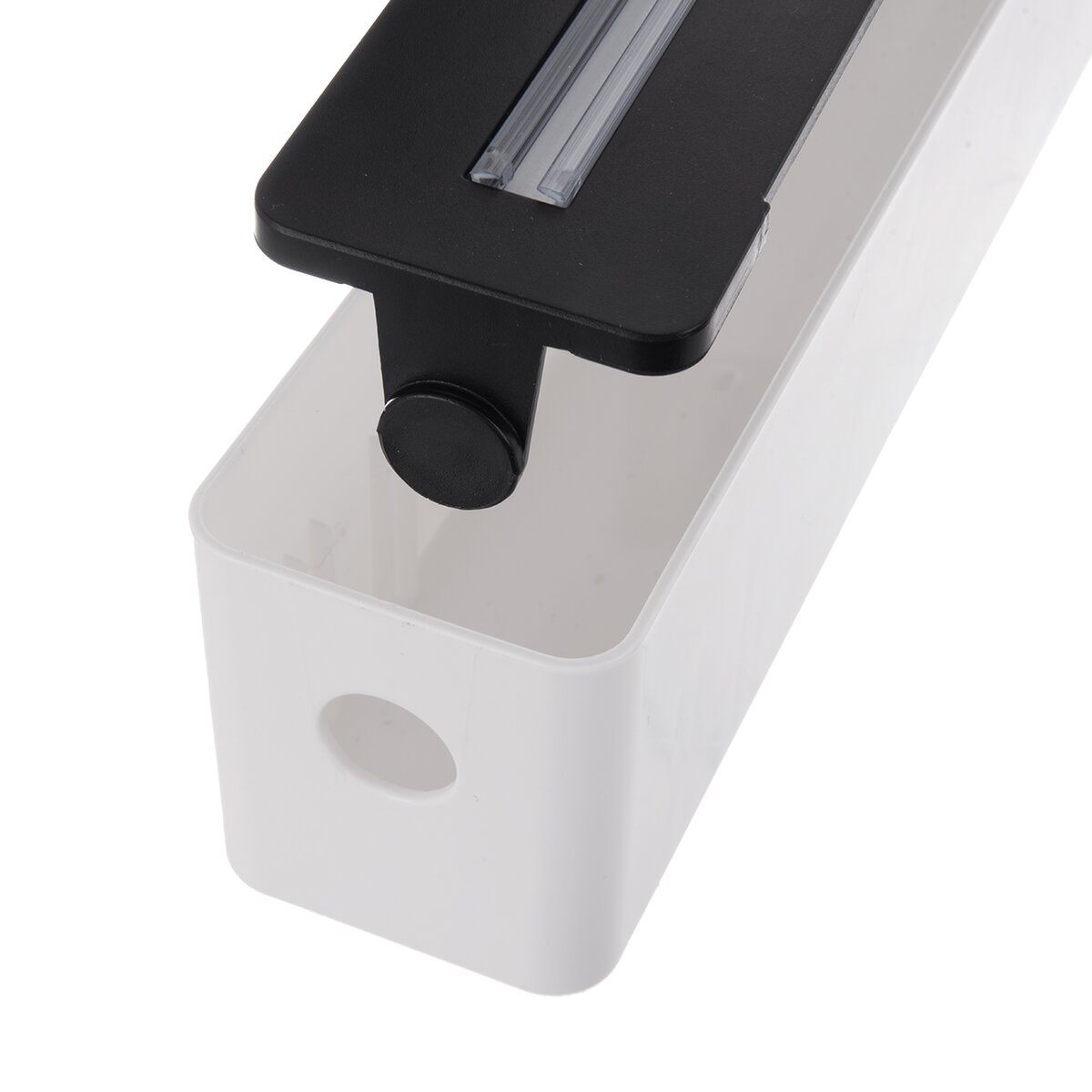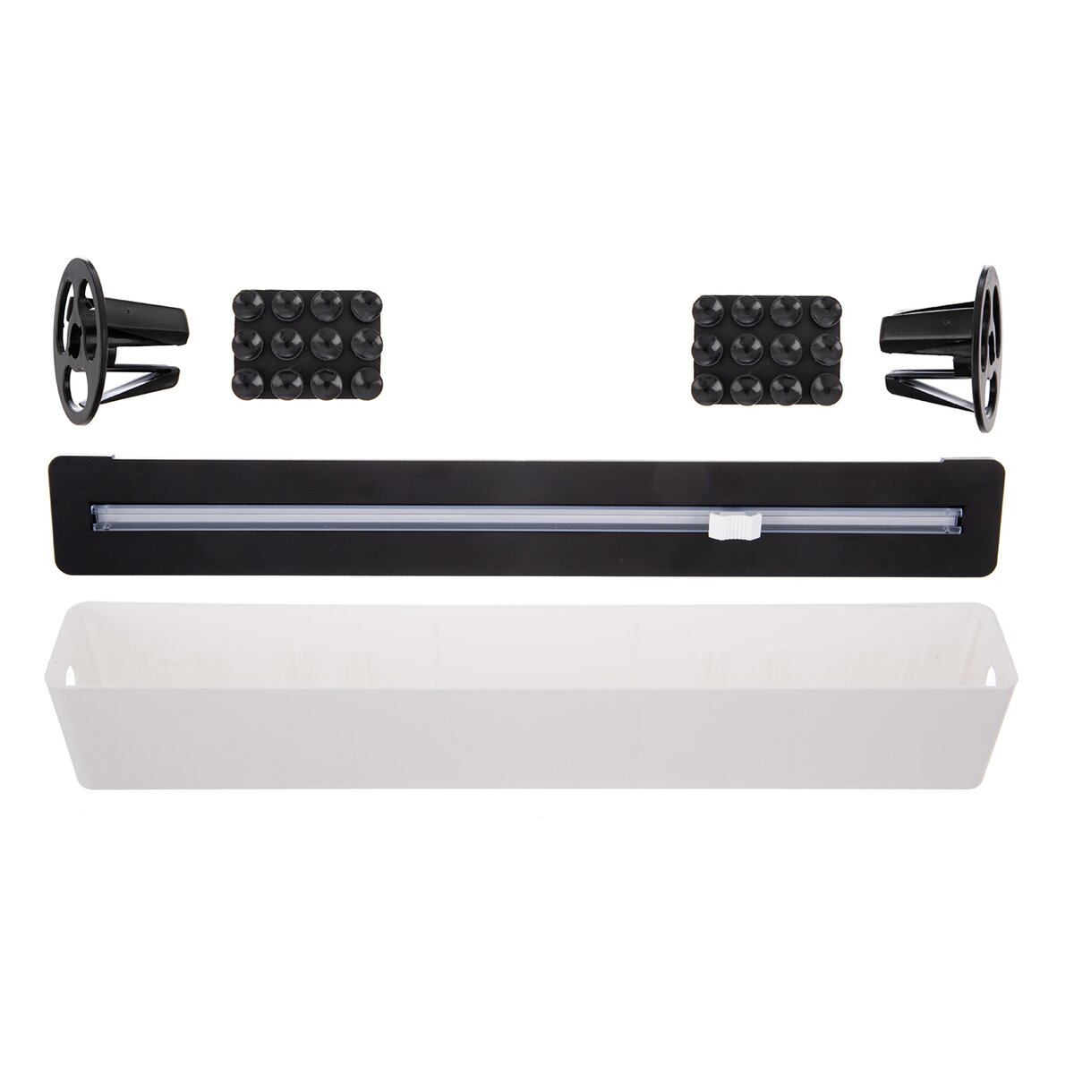 Kód produktu 154064Plastový zásobník s hornou čiernou časťou je opatrený lištou s rezákom a otvorom, cez ktorý je možné prestrčiť alobal, papier na pečenie alebo potravinársku fóliu a podľa potreby odrezať. Je možné ho pripevniť prísavkami na hladkú stenu alebo uložiť do zásuvky.