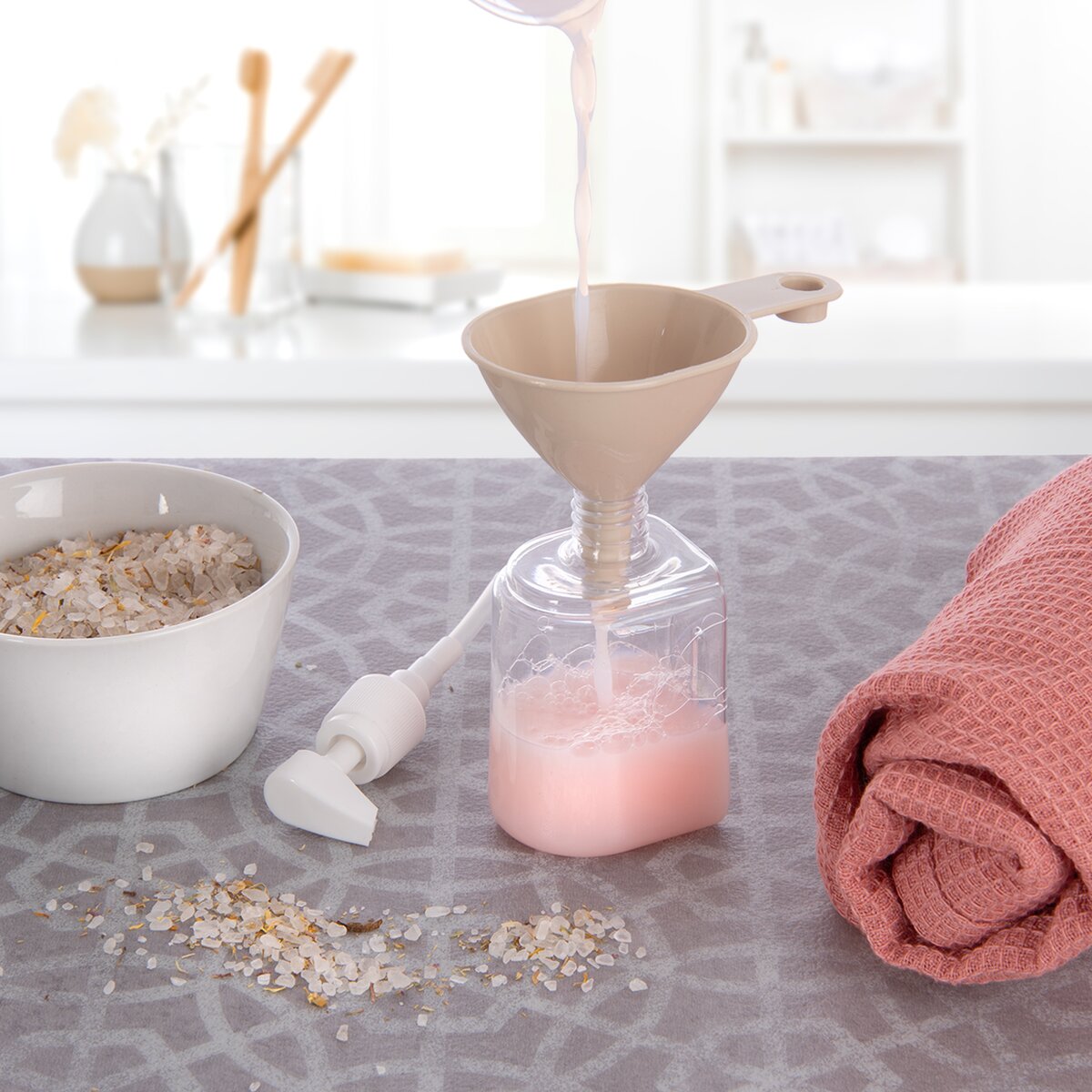 Kód produktu 120458Sada 3 kusov plastových lievikov SUN pre presnejšie nalievanie rôznych tekutín, sirupov, štiav, ale aj mydiel a ďalších kozmetických prípravkov do menších fliaš a nádob.