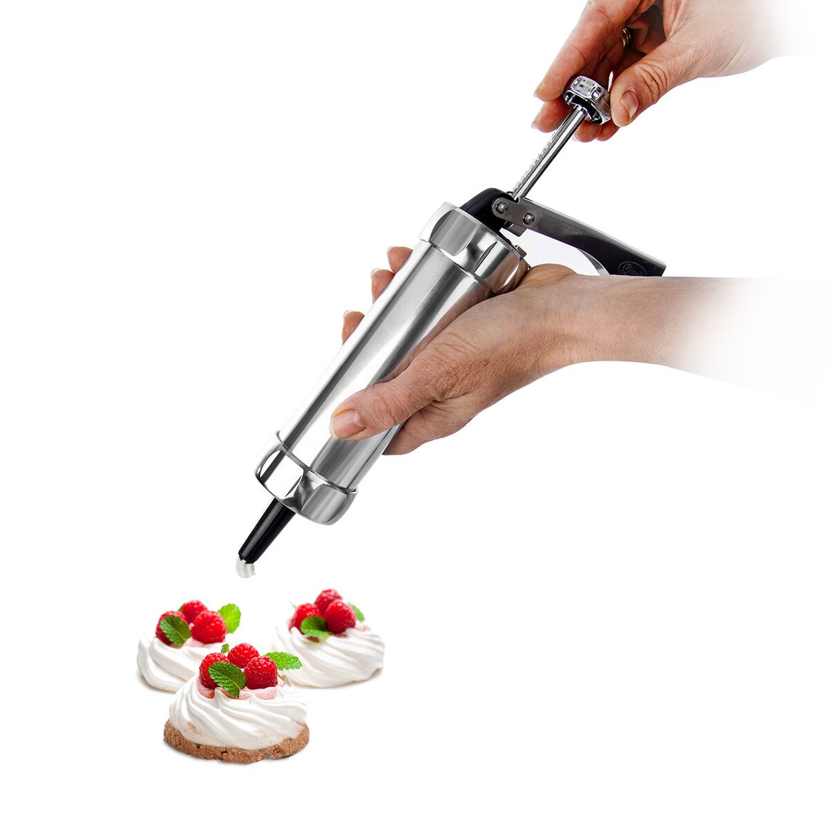 A pri zdobení tort, sladkých dezertov šľahačkou, krémom alebo obložených chlebíčkov pikantnými nátierkami, je možné využiť plastové nástavce. Po použití ho stačí umyť bežným spôsobom.