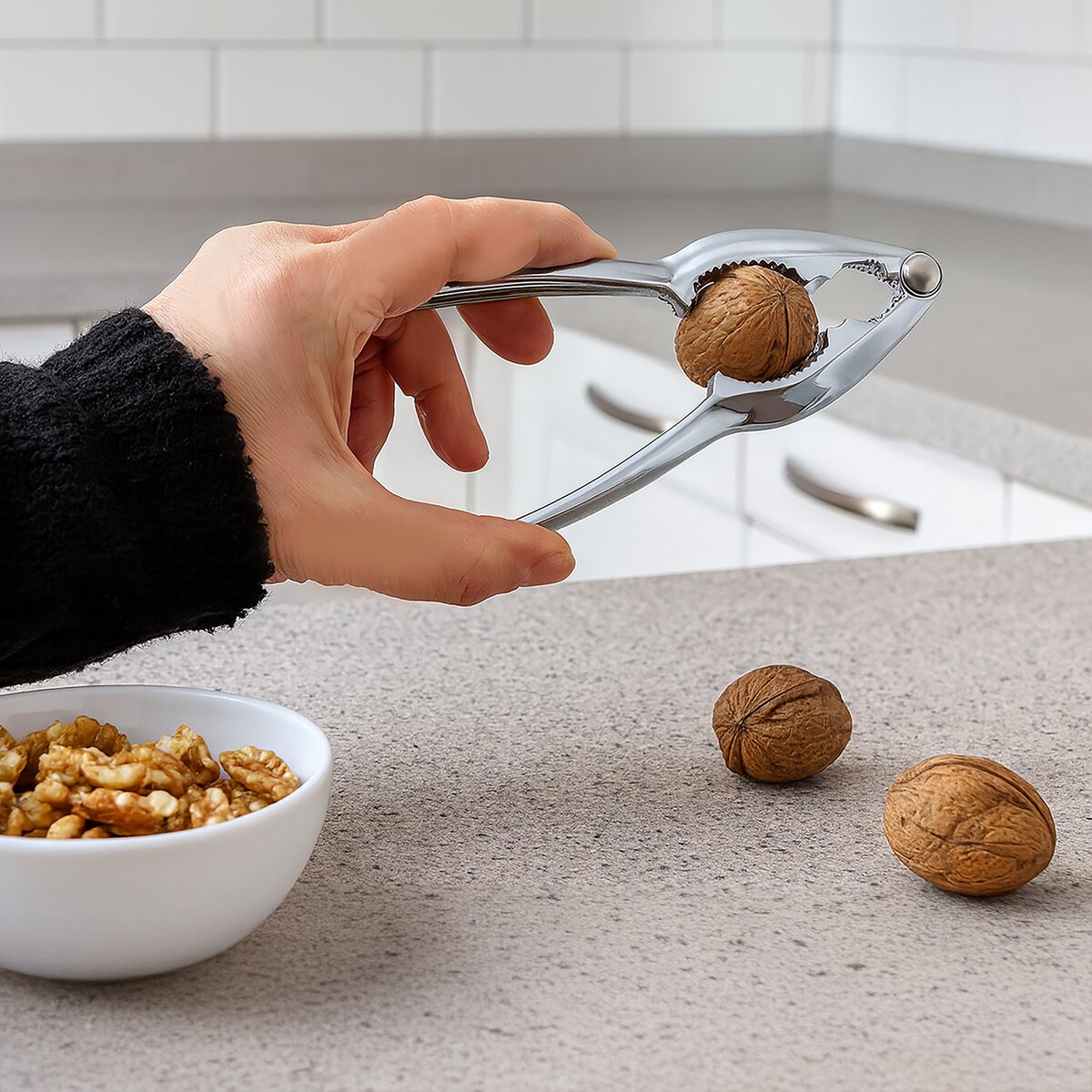 Kód produktu 143527Luskáčik na orechy rôznych veľkostí. Veľmi pevný a odolný. Materiál: kovová zliatina (zliatina zinku) + povrchová úprava. Rozmery: d. 15 cm, š. 3,8 cm. Nie je vhodný do umývačky na riad.