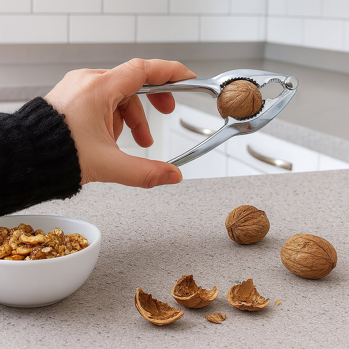Kód produktu 143528Luskáčik na orechy rôznych veľkostí. Veľmi pevný a odolný. Materiál: pochromovaný kov. Rozmery: d. 15 cm, š. 3,5 cm. Nie je vhodný do umývačky na riad.