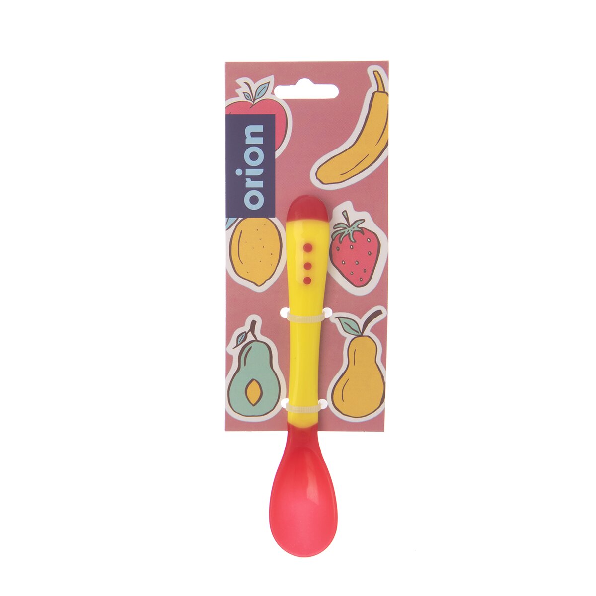 Kód produktu 144606Červenožltá plastová lyžička dĺžky 13,5 cm je určená na každodenné používanie.