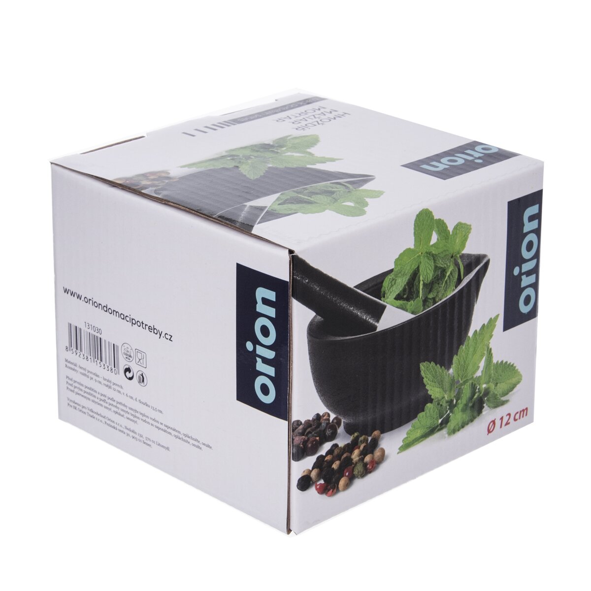 Kód produktu 131030Čierny porcelánový mažiar priemeru 12 cm s tĺčikom, umožňujúci rýchle drvenie korenia, byliniek alebo prípravu pesta.