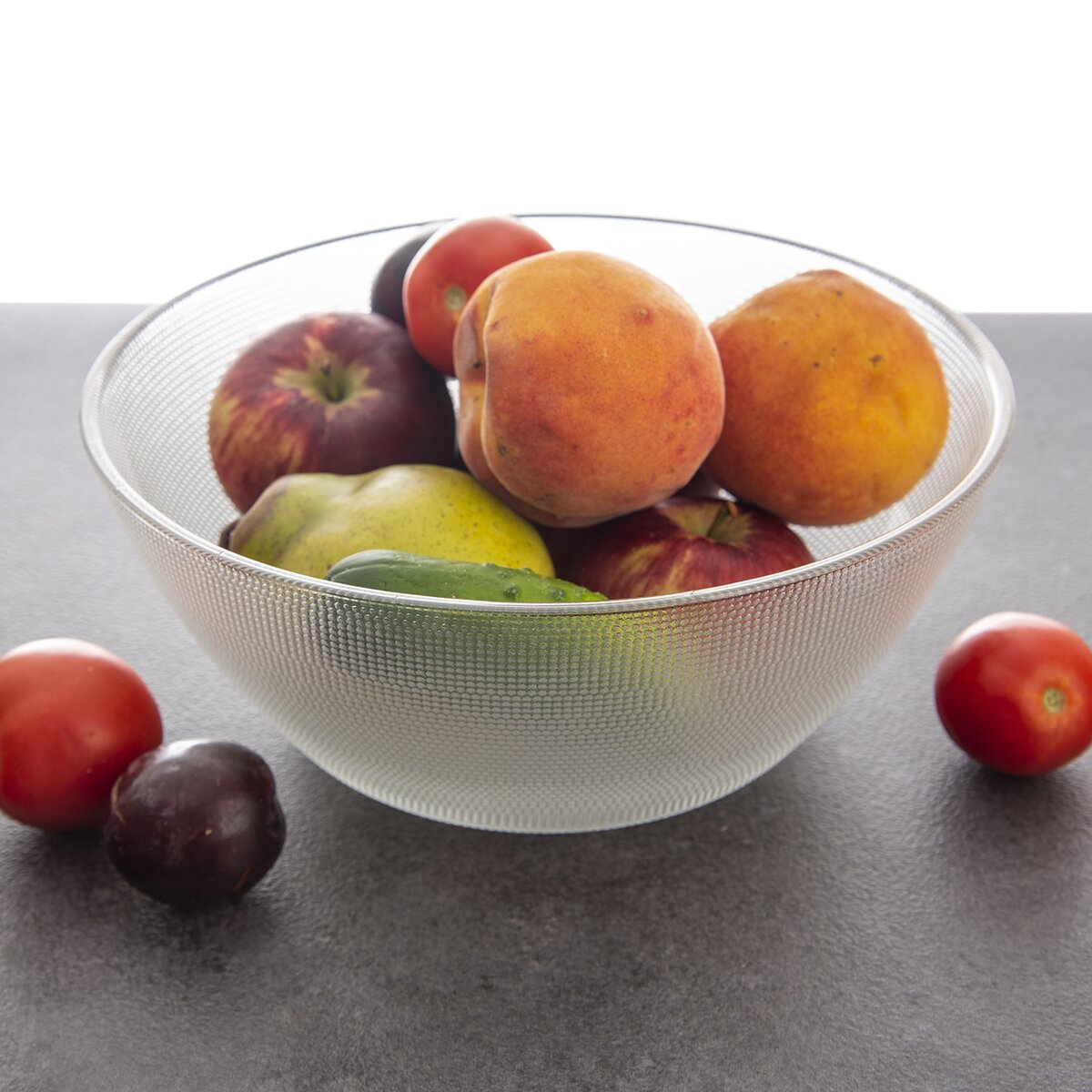 Sklenená miska EMA je ideálna na servírovanie ovocných či zeleninových šalátov, ale aj na prípravu najrôznejších pokrmov. Poslúži tiež ako odkladacia miska pri varení a pečení. Má priemer 23 cm a pozornosť upúta predovšetkým svojim plastickým dekórom drobných bodiek.