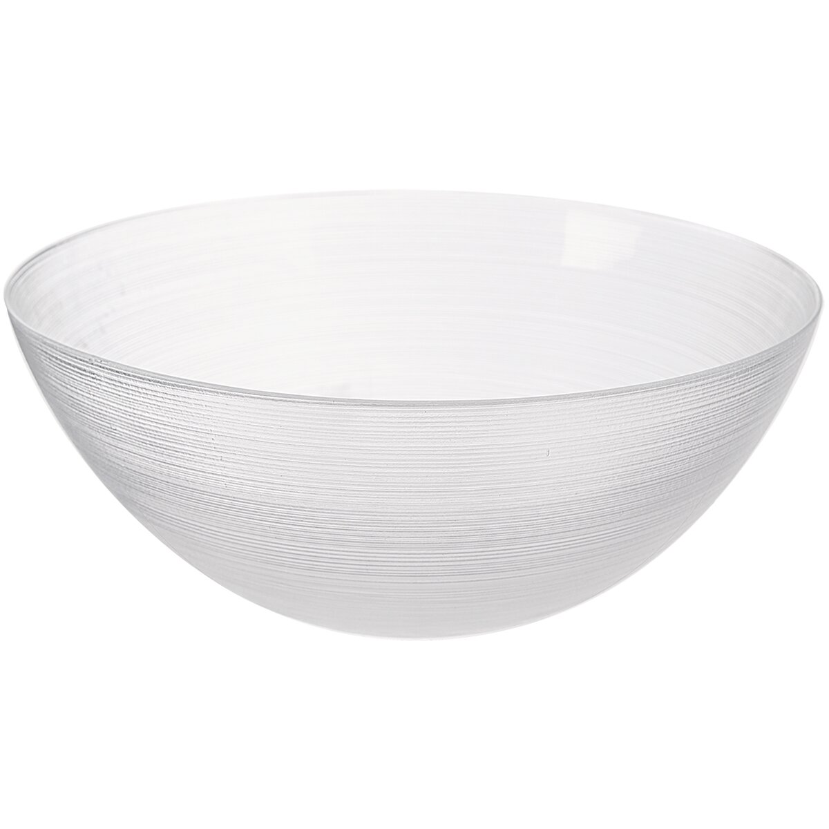 Kód produktu 129816Dizajnová sklenená miska s priemerom 28 cm je zdobená z vonkajšej strany jemným plastickým dekórom prúžkov.