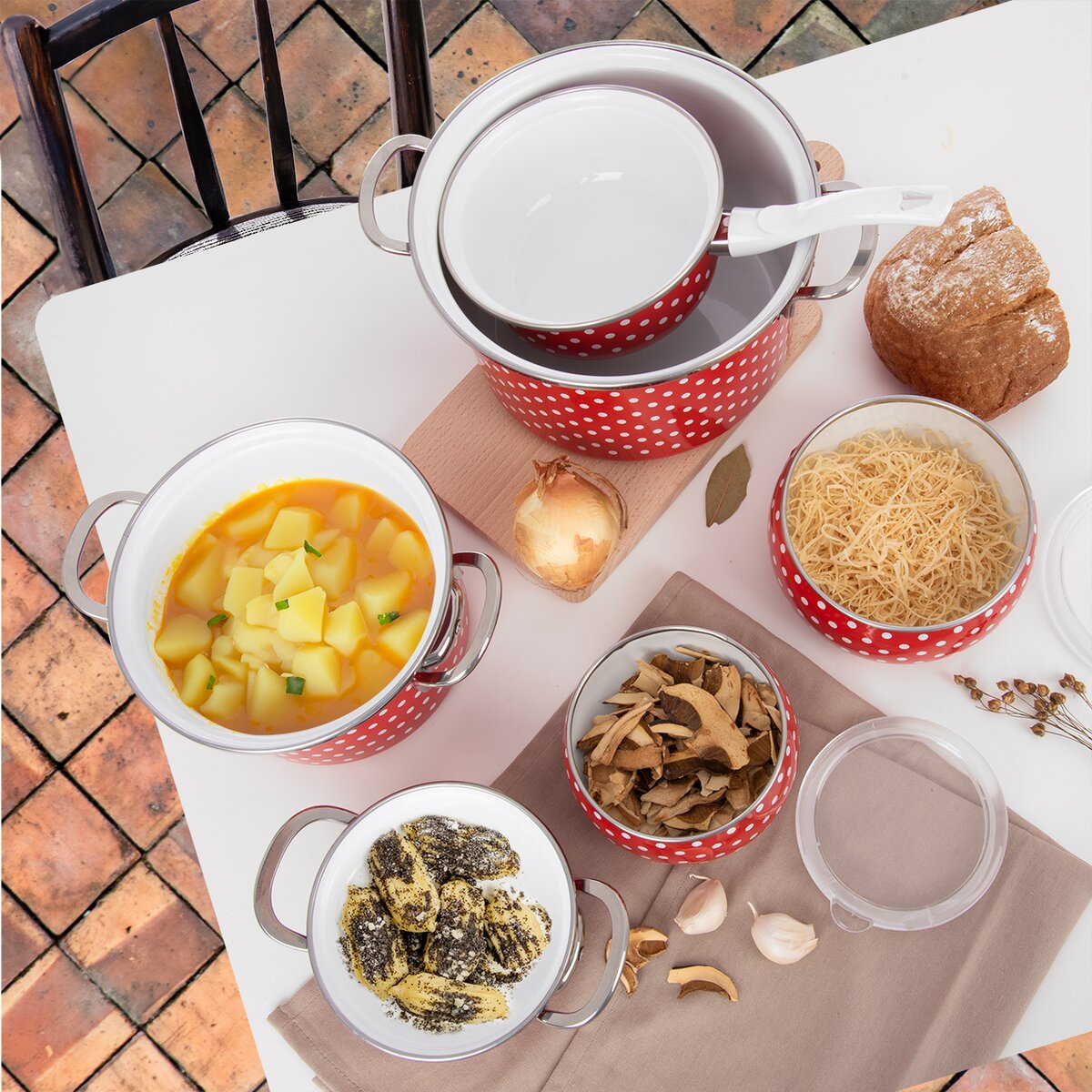 Viac informáciíUž dlhú dobu je v kurze rustikálny štýl vybavenia kuchýň, doma aj na chalupe. Preto sme tu s kolekciou BODKA s nostalgickým retro nádychom, kde hlavnú úlohu hrajú bodky na červenom podklade.