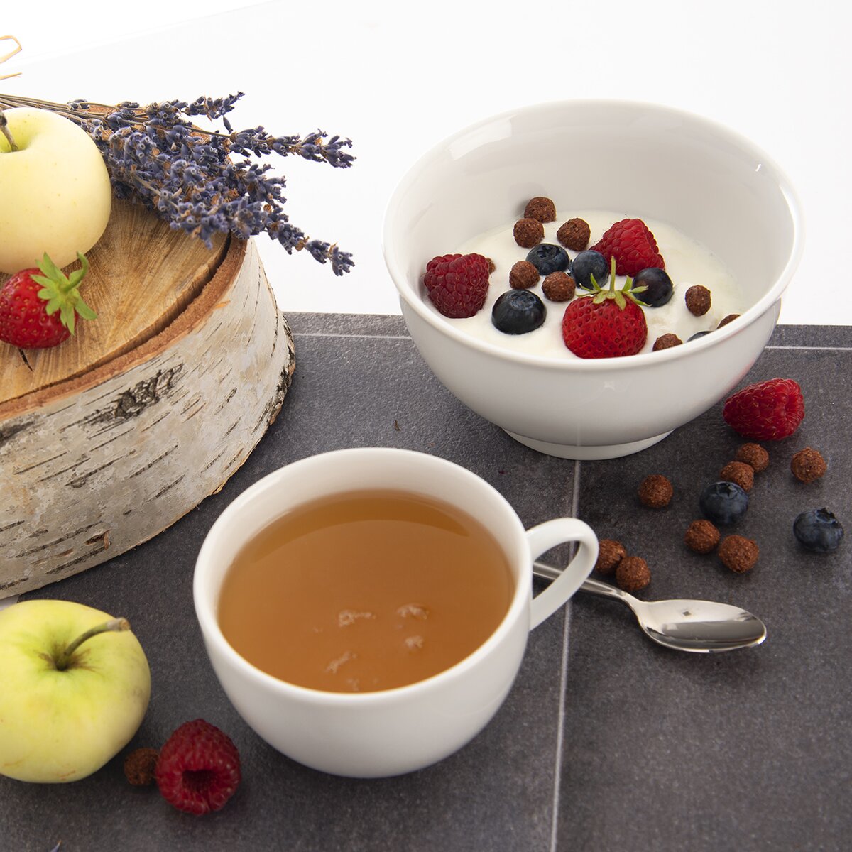 Viac informáciíBiela miska MONA s objemom 550 ml zaujme predovšetkým svojim jednoduchým štýlom. Na stole vyzerá elegantne a hodí sa na servírovanie sladkých alebo slaných dobrôt, ale aj raňajky, ako je šalát, jogurt s ovocím, puding alebo ovsená kaša.