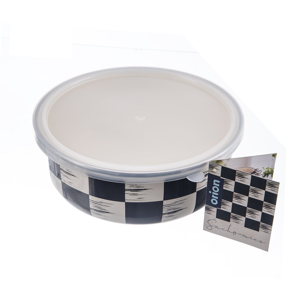 Kód produktu 129234Smaltovaná miska ŠACHOVNICA s nerezovým lemom má objem 1,5 l, je doplnená plastovým viečkom a slúži na skladovanie, prenášanie aj servírovanie pokrmov.