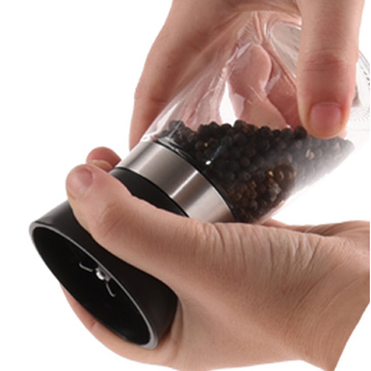 Mlynček na korenie alebo soľ s průhlednou sklenenou časťou, která snadno nazvá korenie alebo při dokončovacích pokrmech, ale dochutí aj hotové jedlá priamo pri stole.