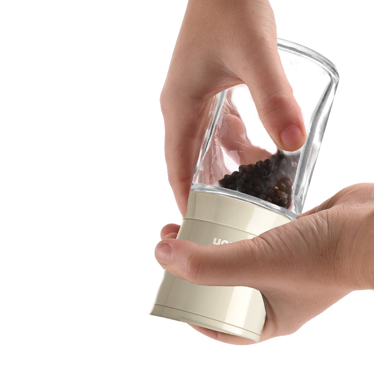 Je vyrobený z transparentnej sklenenej časti, vďaka ktorej vidíte zostávajúce množstvo a je možné ju umývať v umývačke, ďalej z plastu ABS a keramického mlecieho mechanizmu.
