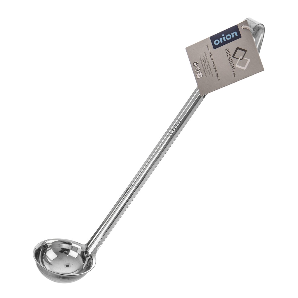 Kód produktu 140270Malá nerezová naberačka s dĺžkou 28 cm a priemerom 5,5 cm. Je zakončená háčikom na zavesenie.