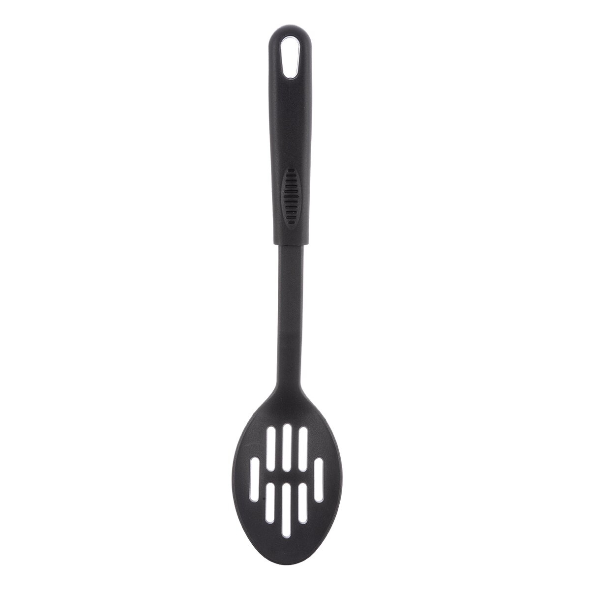 Kód produktu 144906Dierovaná servírovacia naberačka – lyžica sa stane všestranným pomocníkom vo vašej kuchyni. Vďaka praktickému dizajnu s otvormi ľahko oddelíte pevné suroviny od tekutín, čo oceníte napríklad pri vyberaní zemiakov z vriacej vody, mäsa z omáčky alebo kusov zeleniny z vývaru. Elegantný vzhľad zaisťuje, že sa lyžica hodí do každej kuchyne. Ergonomická rukoväť dobre padne do ruky a umožňuje aj ľahké zavesenie. Naberačka je vyrobená z odolného termoplastu PBT, ktorý znesie teploty až do +200 °C. Materiál je trvanlivý, vhodný do umývačky riadu a bezpečný na použitie s akýmkoľvek nepriľnavým riadom. Materiál: termoplast PBT. Rozmery: d. 30,5 cm, š. 6,6 cm.