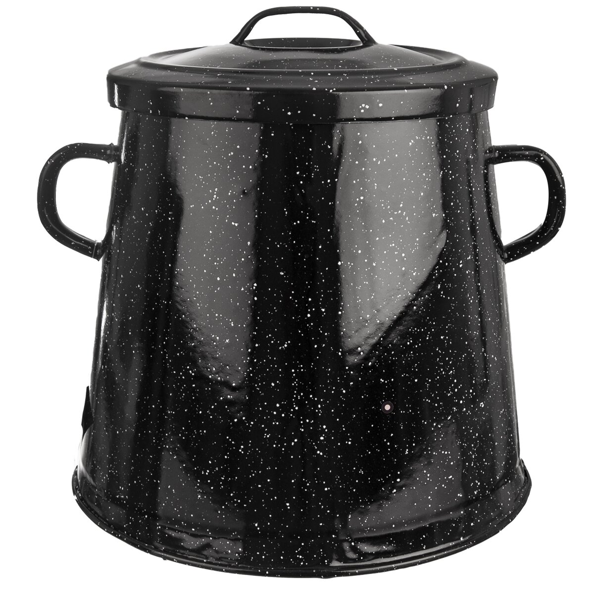 Kód produktu 113133Nádoba na masť s viečkom a dvomi ušami. Materiál: kov, smaltový povrch. Rozmery: objem 11 l, pr. 29/22 cm, 25/29 cm.