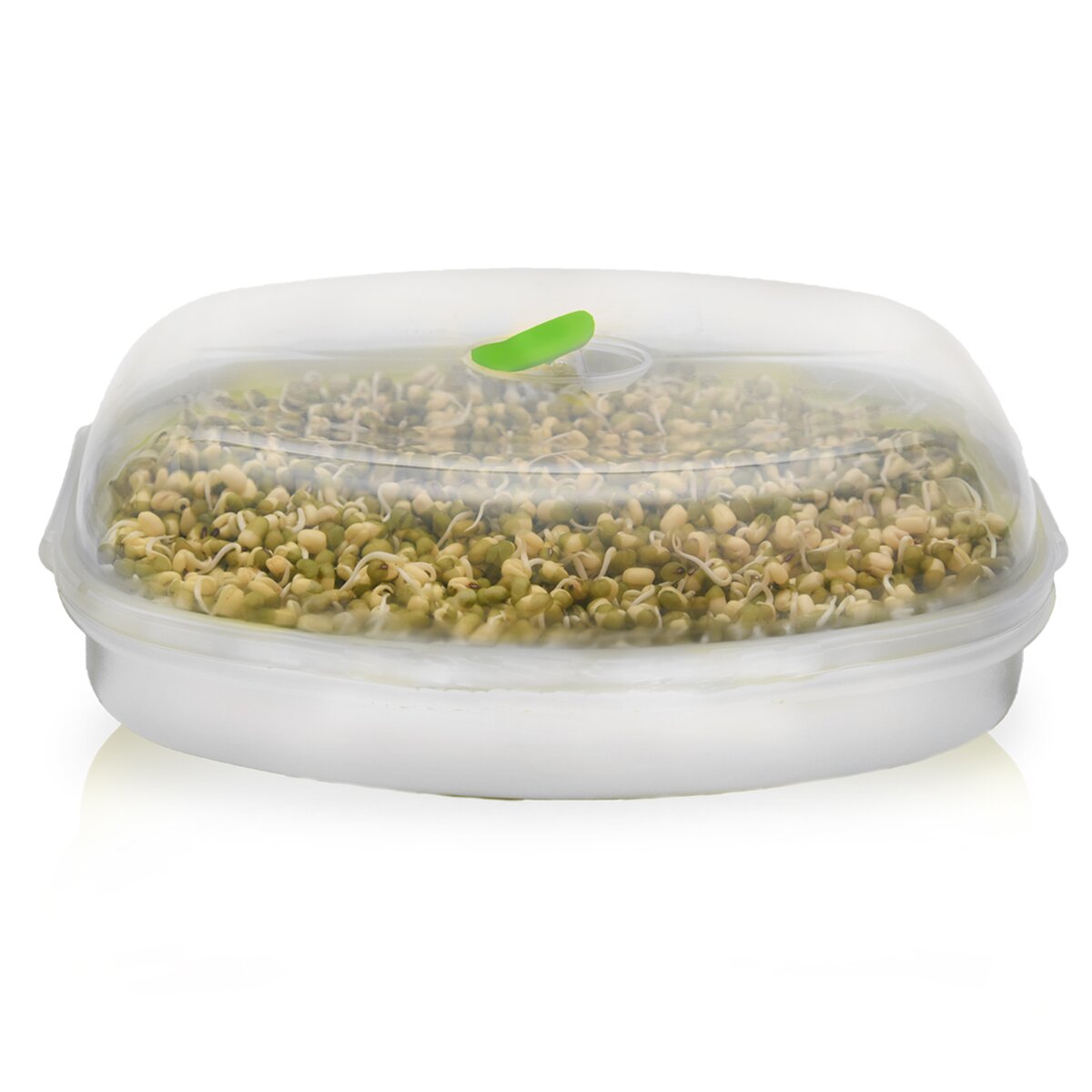 Táto biela plastová miska zaručuje pohodlné klíčenie semien strukovín, obilnín, bylín i zeleniny. Obsahuje plastové sieťko a viečko s menším otvorom, ktorý umožňuje prístup vzduchu. Klíčky konzumujte najlepšie surové, aby nestratili svoje cenné živiny. Odporúčame s nimi posypať namazaný chlieb, pridať do šalátu alebo ich primiešať do už uvarených polievok, nátierok či rizota.