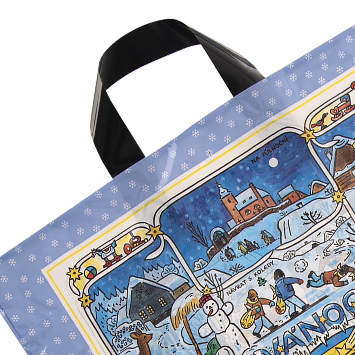 Kód produktu 822721Igelitová taška s vianočnými motívmi od Jozefa Lady, s páskovým uchom a zloženým dnom.