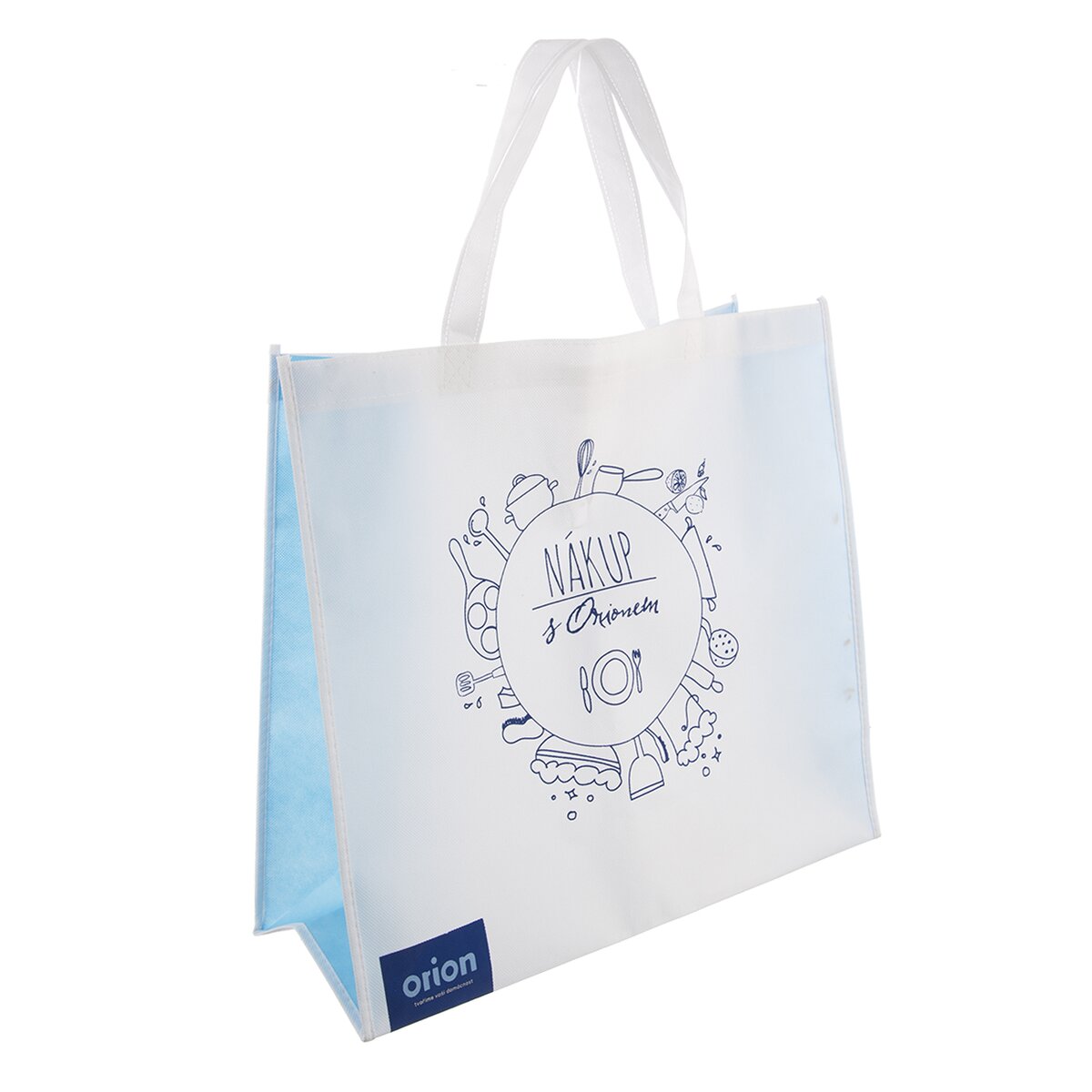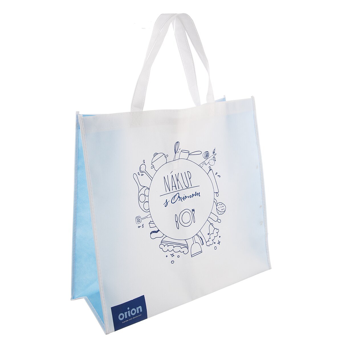 Namiesto igelitovej tašky je možné opakovane používať veľkú nákupnú Orion tašku, ktorá má rozmer 45,5x17,5x39 cm. Bez problému unesie až 8 kilogramový nákup, je vyrobená zo 100% polyesteru - netkanej textílie a je opatrená uchami.