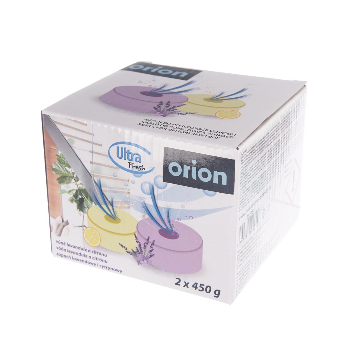 Kód produktu 832387Sada 2 kusov náhradných tabliet do pohlcovača vlhkosti, jedna s vôňou citrónu a druhá s vôňou levandule. Každá má hmotnosť 450 g a priemer 10 cm.