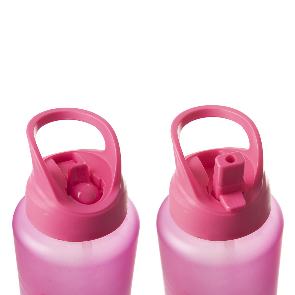 Ružovo-zelená fľaša je vhodná do auta, do práce, do školy aj na šport. Je vybavená praktickým náustkom a držadlom, vhodným na prenášanie.