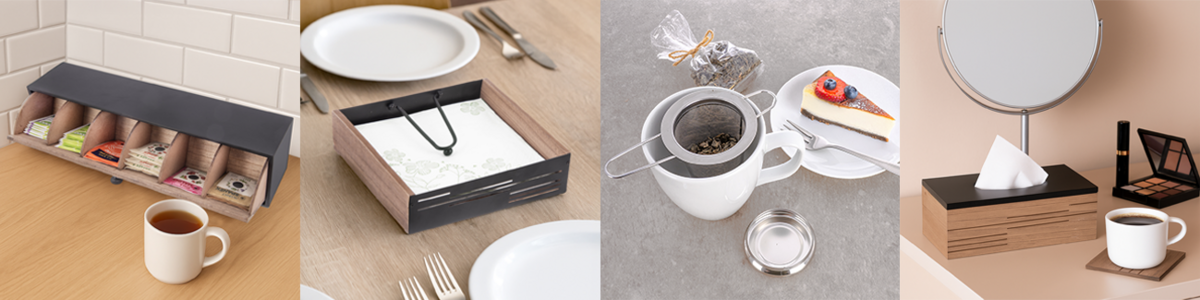 Súčasťou kolekcie sú aj boxy na papierové vreckovky, ktoré oceníte najmä v chladnom období. Jednofarebné alebo kombinované s kovom.