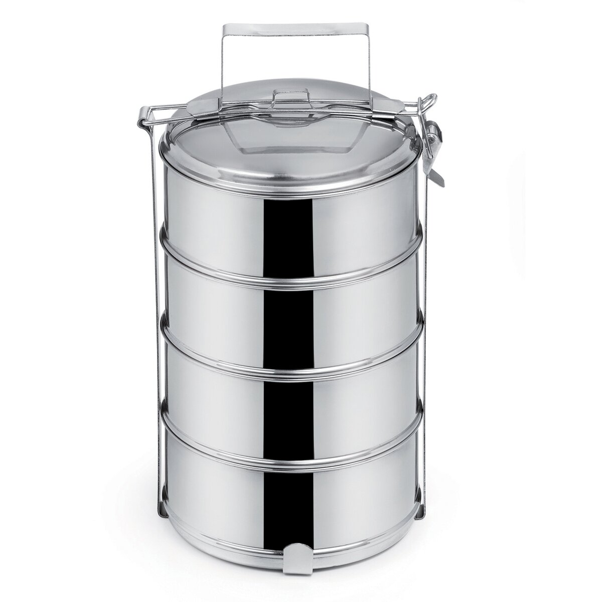 Kód produktu 120914Nerezový štvorposchodový obedár v rovnom prevedení, súčasťou ktorého sú 4 misky s objemom 1 l, vrchná pokrievka a kovový stojan s prackou a uchom, ktorý zostavu spojí a umožní jeho prenášanie.