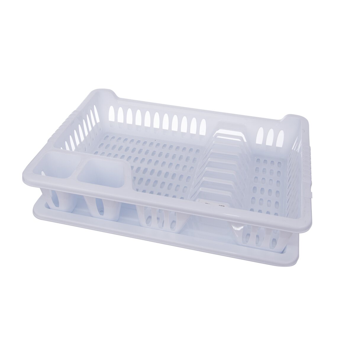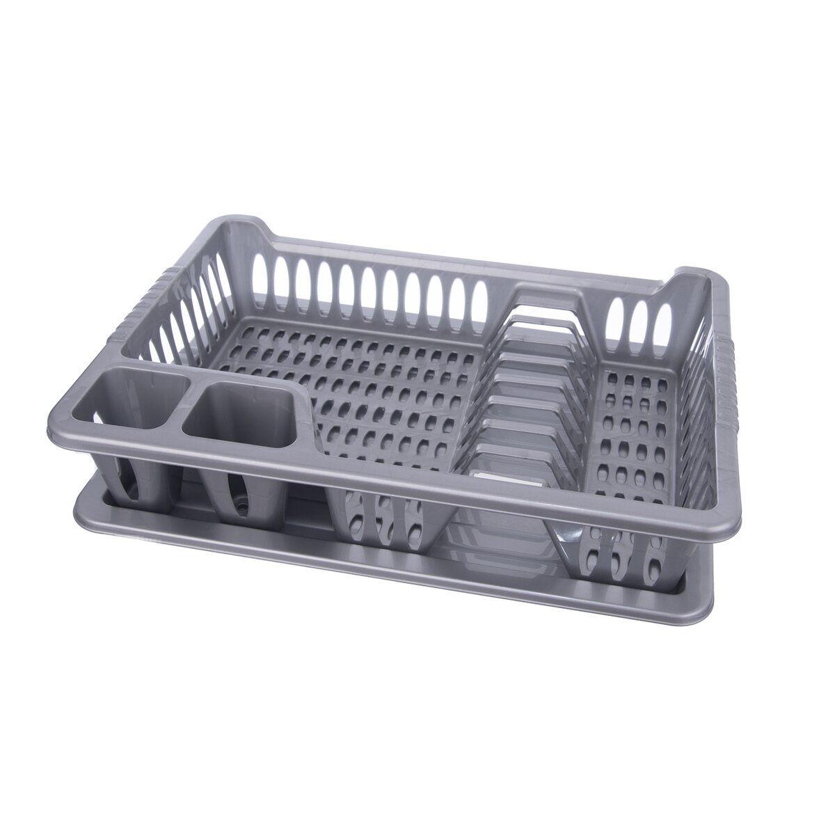 Kód produktu 150669Odkvapkávač na riad s podnosom. Členený - sekcie na príbory, taniere a na ostatné nádoby. Materiál: plast. farebné varianty. Rozmery: 40x29x8,5 cm.