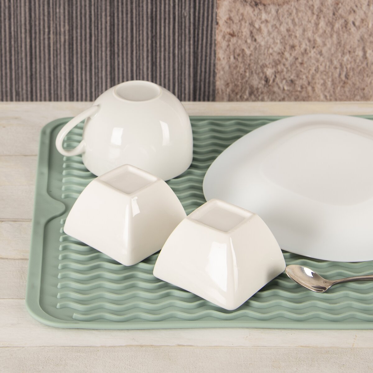 Vďaka mäkkému materiálu a vystúpenej štruktúre nedôjde k poškodeniu chúlostivejšieho riadu, napr. skla, keramiky a porcelánu. Aj keď nemáte už v umývačke dostatok miesta alebo potrebujete narýchlo umyť pár kúskov riadu, potom je tento zelený odkvapkávač ideálnym pomocníkom.