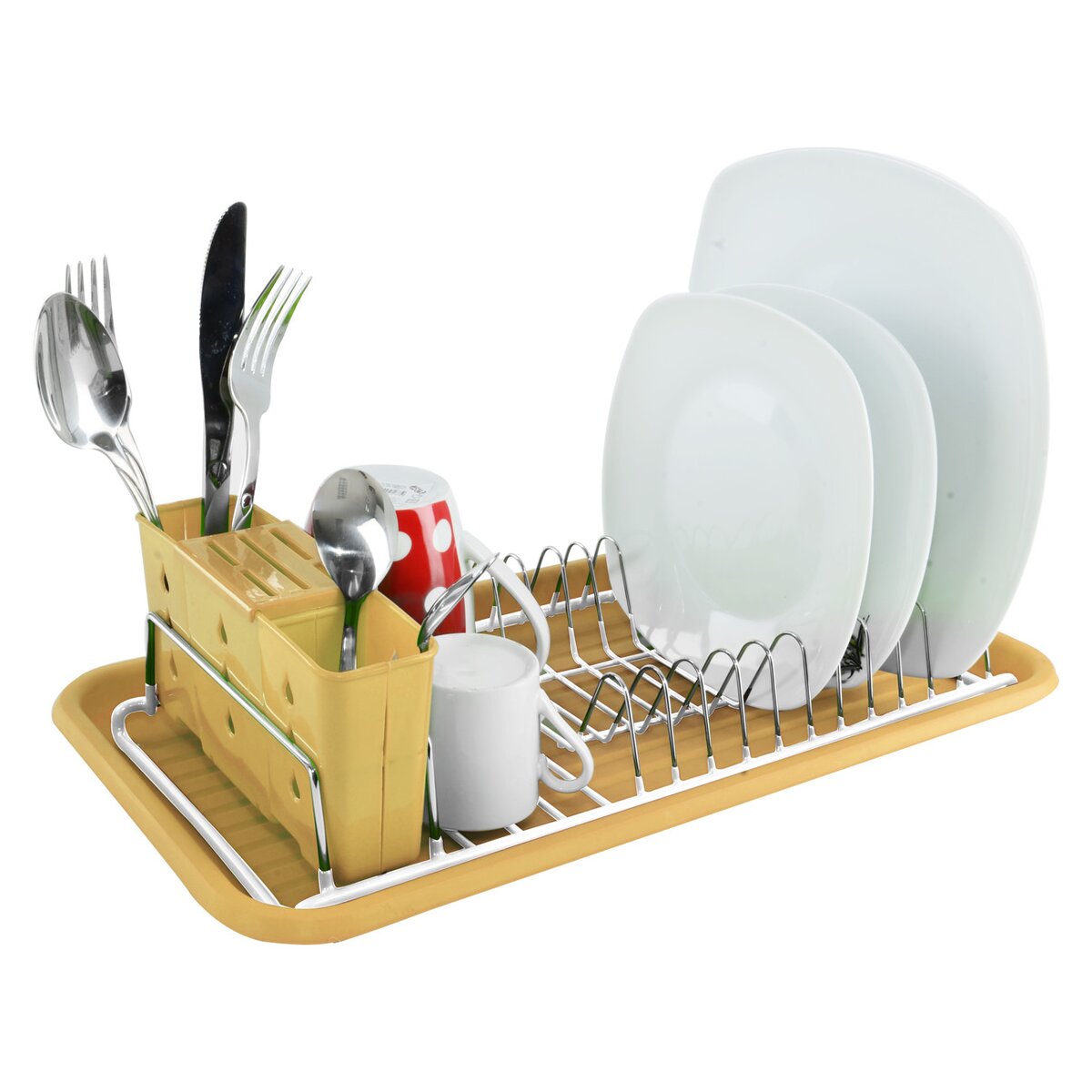Uľahčite si umývanie riadu. Tento odkvapkávač je rozdelený do troch sekcií. Jeho súčasťou je konštrukcia na taniere, odkladacia plocha na hrnčeky aj stojan na príbory.