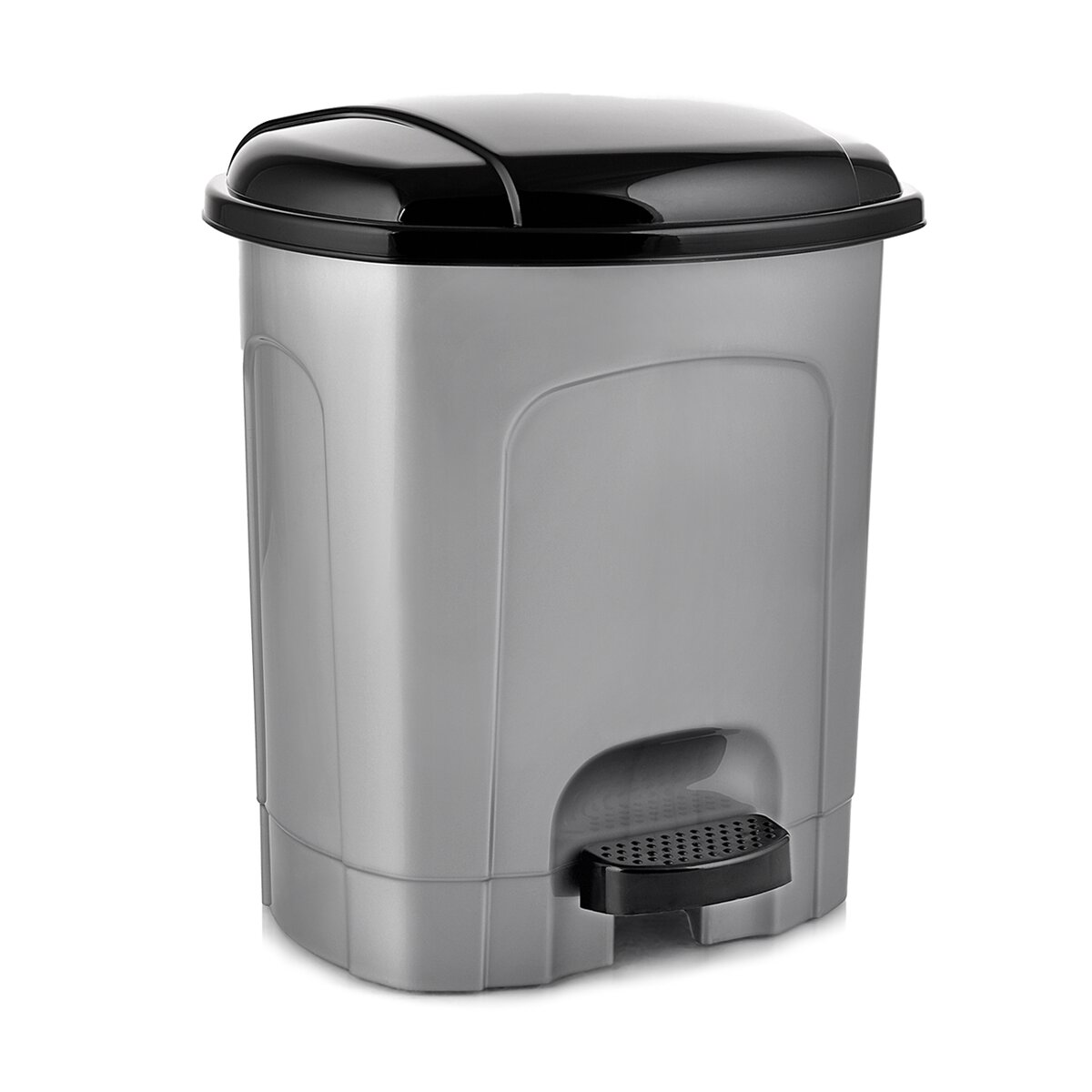Kód produktu 731374Šedočierny odpadkový kôš s objemom 11,5 l s pedálom a vyberateľným plastovým košom.