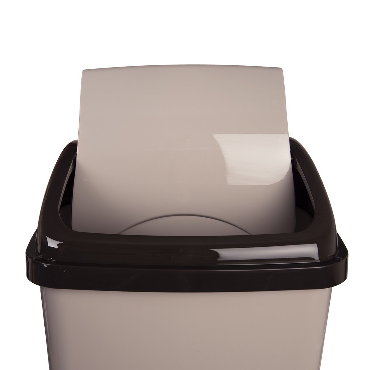 Kód produktu 731396Plastový odpadkový kôš o objeme 26 l s mechanizmom kolísky vo veku, v príjemnej kávovej farbe.
