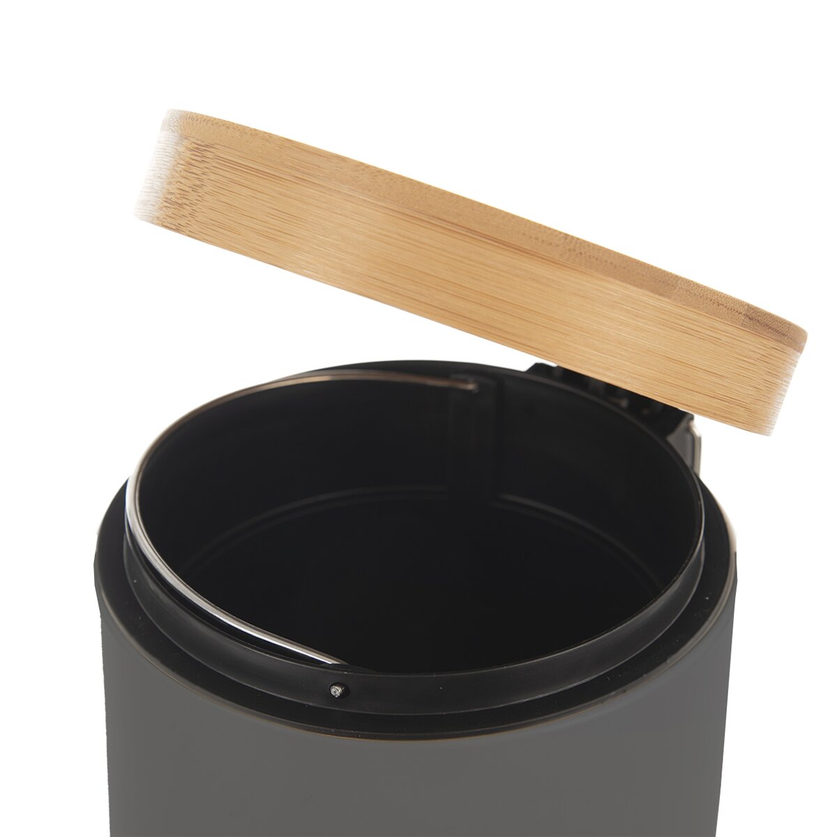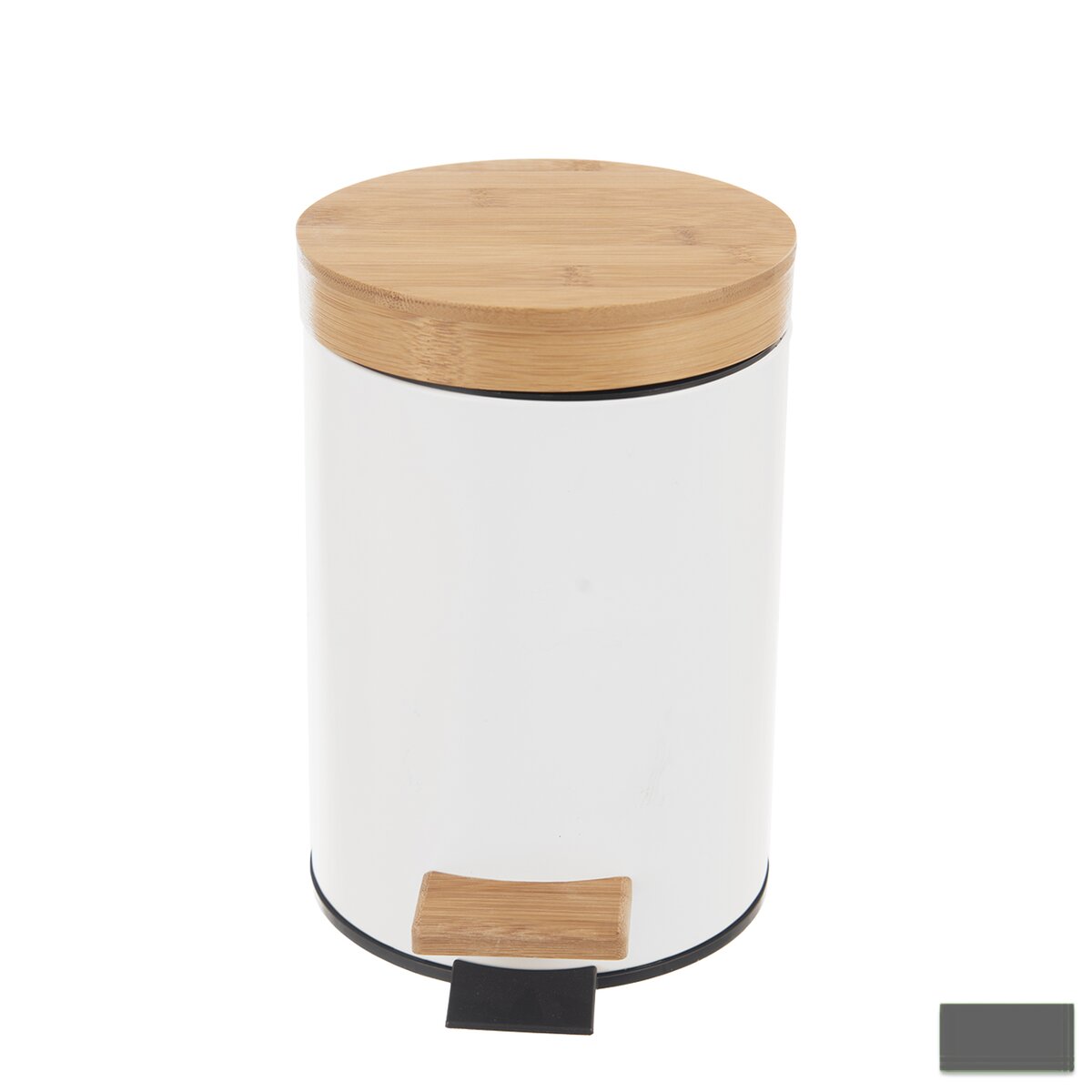Kód produktu 731397Nerezový kôš na odpadky s objemom 3 l s nášľapným otváraním, vekom a pedálom z bambusového dreva.