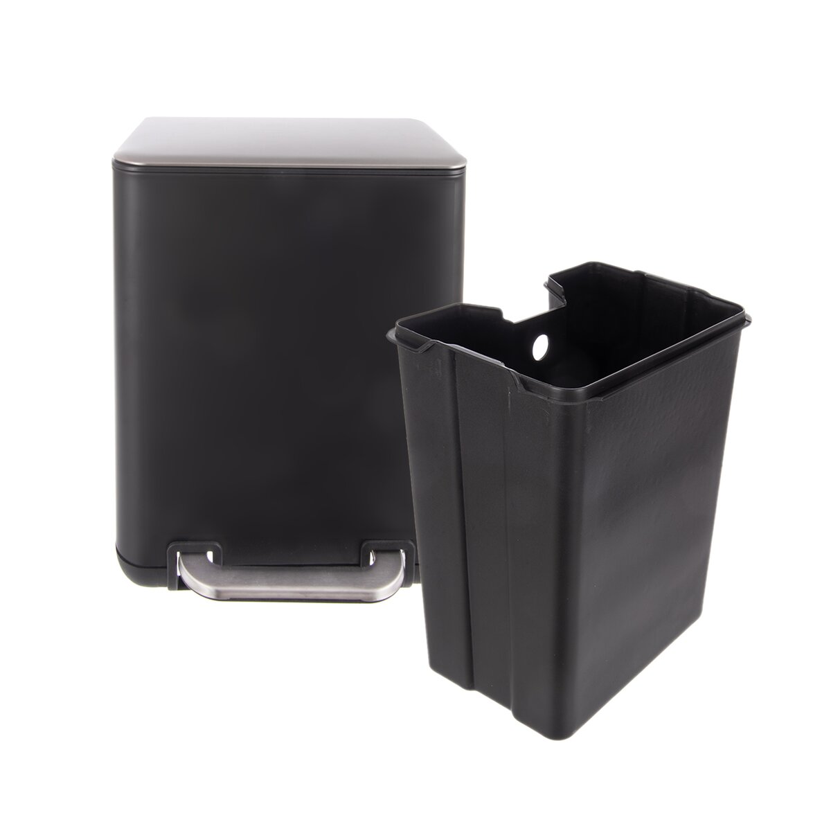 Tento čierny odpadkový kôš s objemom 6 l sa otvára pomocou nožného pedála, čo zaručuje väčšiu hygienu a pohodlie. Navyše má vyberateľnú plastovú nádobu z PP, čo uľahčuje manipuláciu pri vynášaní odpadkov alebo vkladaní vreciek.