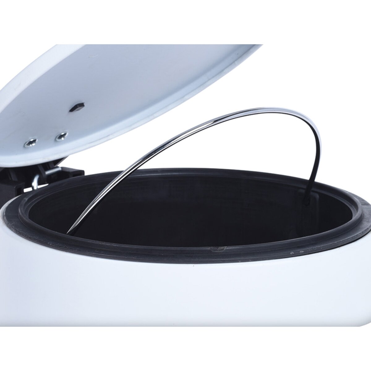 Kód produktu 731328Kovový odpadkový kôš s objemom 3 l s vekom a vyberateľným plastovým košom, otvára sa pomocou nášľapného systému.
