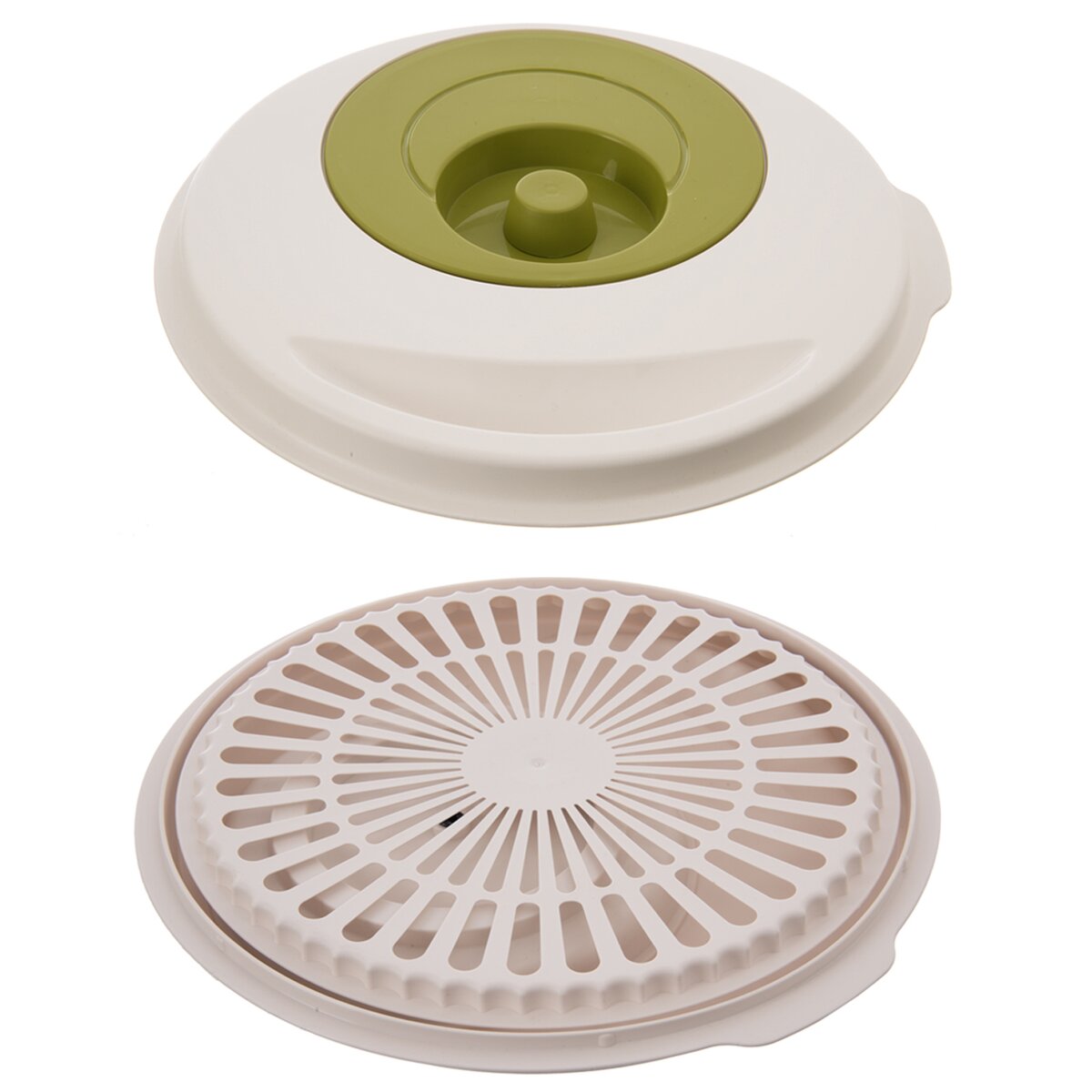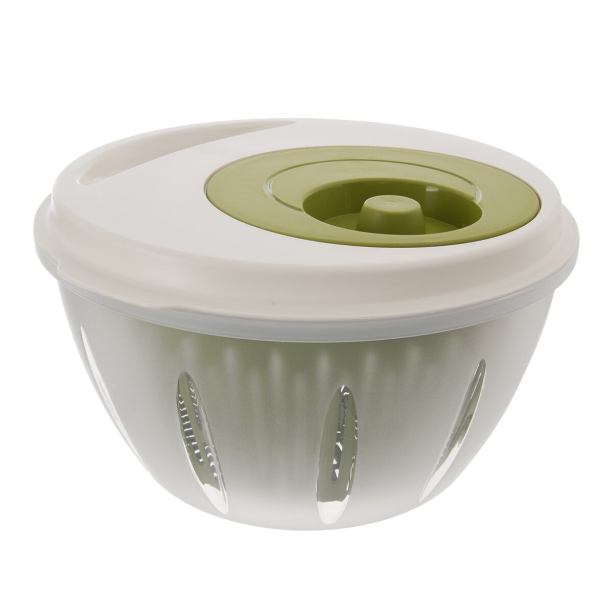 Šalát, ovocie alebo zeleninu umyjete, ak ich vložíte do odstredivky z odolného plastu. Počas chvíle máte perfektne pripravené suroviny na ďalšie spracovanie do šalátov, múčnikov a pod. Jednoduché a rýchle čistenie vďaka vyberateľnému košu. Sitko nasadené na stredový tŕň misy spoločne s mechanizmom vo veku misky zaistí ľahké, ale dokonalé odstreďovanie vody z umytej zeleniny, stačí jednou rukou veko za priehlbinu pridržať, druhou rukou uchopiť pohyblivé držadlo v zelenej výseči.