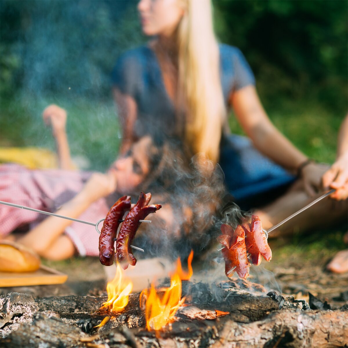 Možno ju rozložiť z dĺžky 24,5 cm až na 86 cm, takže môžete mať bezpečný odstup od ohňa a pritom si niečo dobré opiecť. Po použití ju stačí umyť v teplej vode so saponátom, opláchnuť a osušiť. Aj na výlete ju potom ľahko zložíte, oba hroty zabezpečíte krytmi z PVC a uložíte do batohu. Je skladná a ľahká, hodí sa na použitie na záhrade, v kempe aj v táborisku.