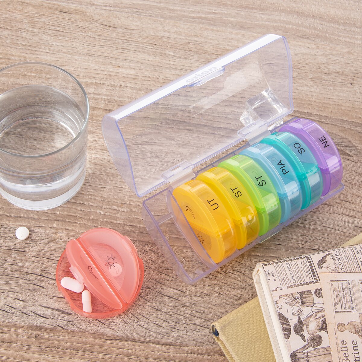 Získate prehľad, že ste tabletky už vzali alebo nie, ale samostatné okrúhle boxy môžete tiež vybrať a vziať si len danú krabičku s liekmi kamkoľvek so sebou do kabelky alebo batohu. Na služobnú cestu, výlet alebo kratšiu dovolenku.