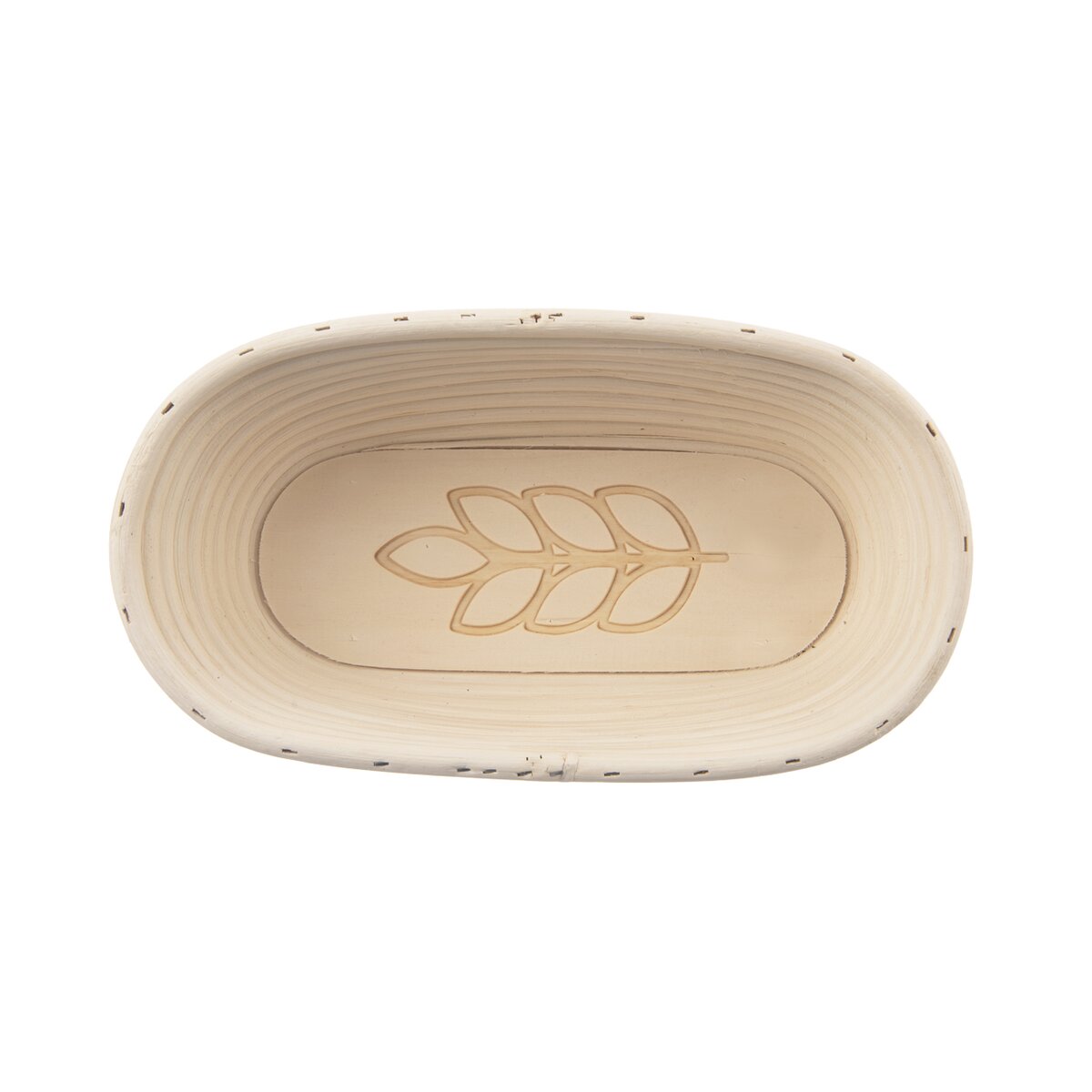 Ošatka rozmeru 26x13x9 cm, vyrobená z prírodného pedigu, je vhodná na prípravu kysnutého domáceho chleba oválneho tvaru s typickým reliéfom a motívom klasu uprostred, hodí sa aj na uskladnenie chleba, jeho servírovanie a na dekoráciu.