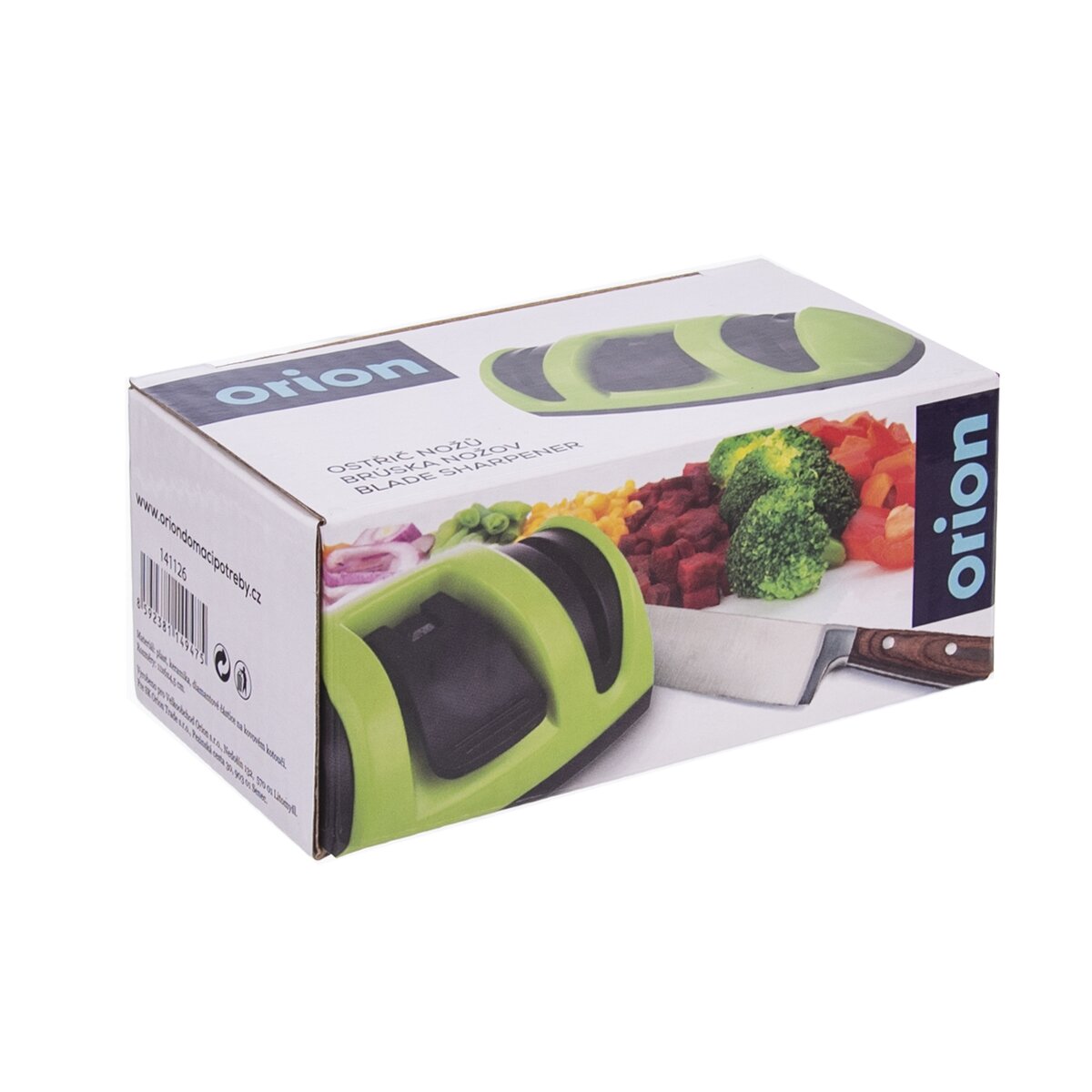 Brúska z plastu ABS s keramickým kotúčom a s kovovým kotúčom s diamantovými časticami je určená na brúsenie tupých kovových nožov s hladkým, nie zúbkovaným ostrím, a na ich následné dobrusovanie. Na ostrenie slúži kotúč s diamantovými časticami, ktorým stačí nôž ostriť cca raz za 6 mesiacov, keramický kotúč používajte na dobrusovanie 1 x týždenne.