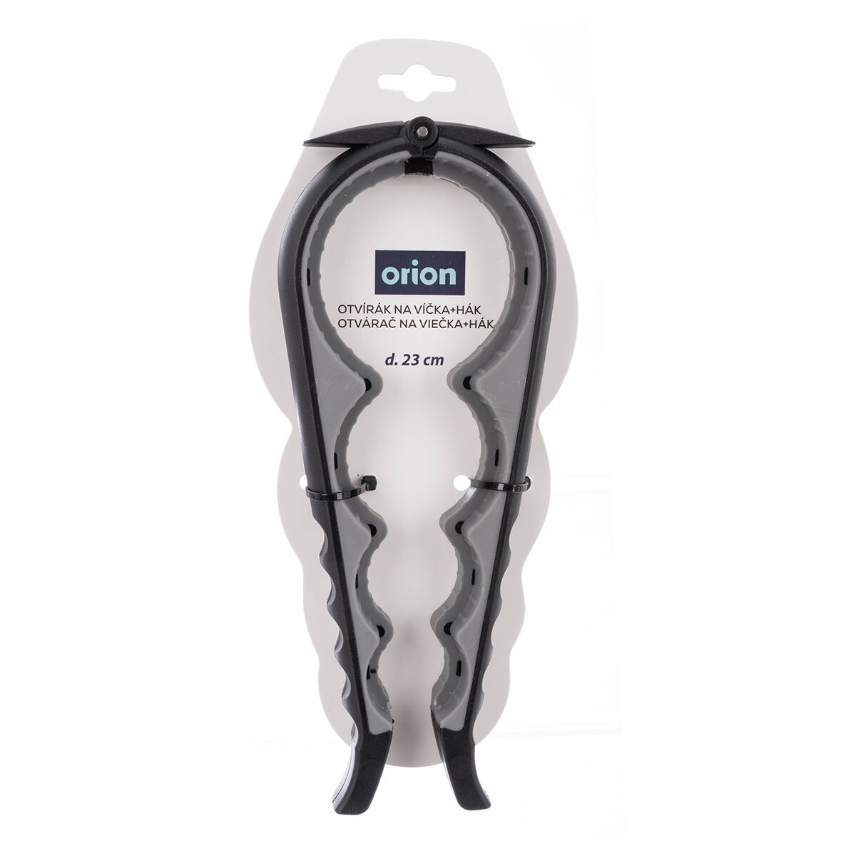 Kód produktu 140910Univerzálny otvárač na niekoľko typov a rozmerov viečok od PET fľaše až po niekoľko rozmerov viečok. Otváranie kečupov, omáčok, zavarenín a nápojov bude oveľa jednoduchšie. Súčasťou otvárača je hák na uvoľnenie viečok pre lepšie otvorenie. Materiál: plast PP a TPE. Rozmery: d. 23 cm, š. 9 cm.