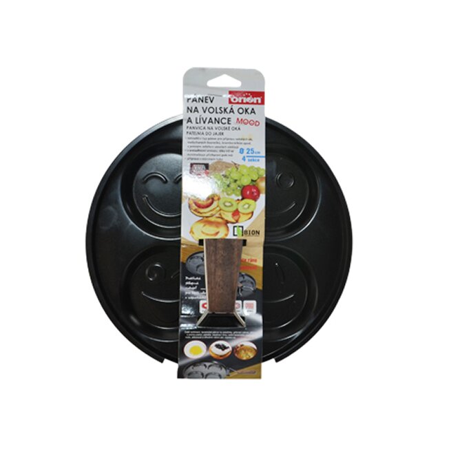 Kód produktu 112695Nepriľnavá panvica s reliéfom smajlíkov na volské oká aj lievance. Vhodná na všetky typy spotrebičov vrátane indukcie.