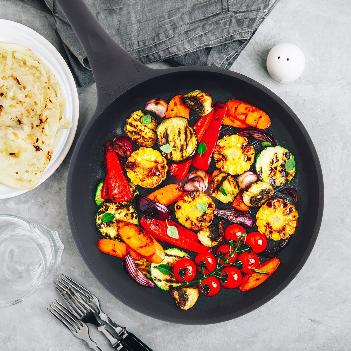 - panvicu je možné zavesiť za otvor na konci rukoväte, potiahnuté silikónom v príjemnom šedom odtieni