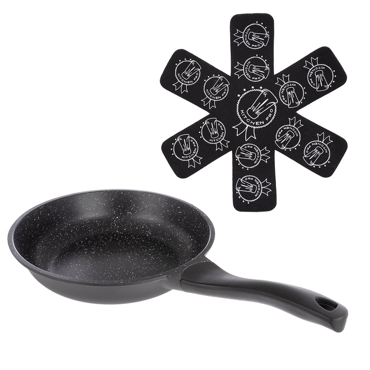 Súčasťou výrobku je ochranná podložka medzi panvice, ktorá Vám zabezpečí, že pri uložení riadu do seba sa povrch panvíc a iných nádob nepoškriabe a nepoškodí - odolná syntetická netkaná textília.