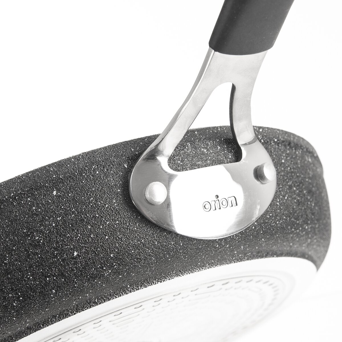 Komfortnú manipuláciu zaisťuje dobre vyvážená nerezová rukoväť, pevne prinitovaná k telu panvice. Rukoväť je vybavená príjemným silikónovým poťahom, ten zamedzí vykĺznutiu panvice z ruky.